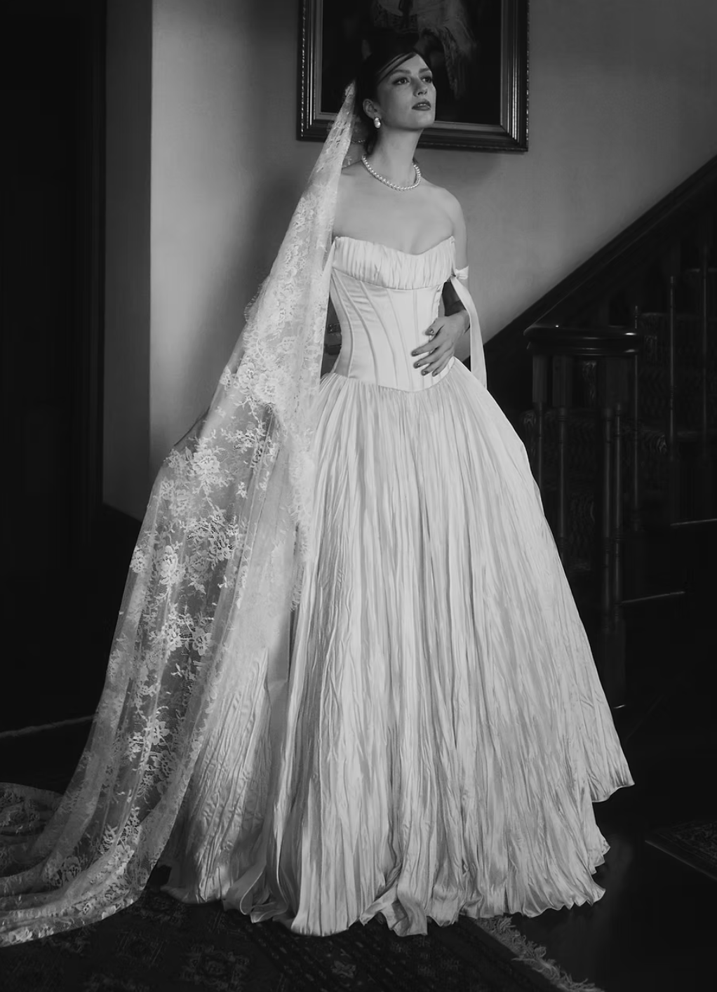 All of our gowns are made-to-order. Please allow 6-8 months to produce, purchasing 8-10 months from your wedding or travel date.